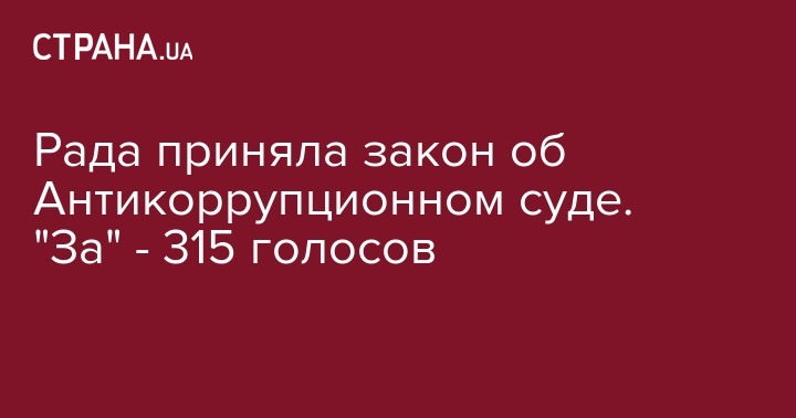 Рада приняла закон об Антикоррупционном суде. "За" - 315 голосов