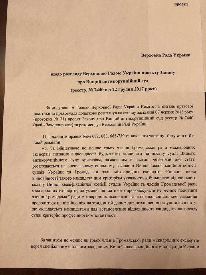 А 1 марта - Рада приняла документ в первом чтении. И сразу напоролась на критику: в законопроекте никакого права "вето" у международных экспертов не было. А сам суд путем нехитрых манипуляций превращался в недееспособный: его попытались "нагрузить" мелкими коррупционными делами и даже обычной уголовщиной. Это вызвало очень резкую реакцию Запада, который пригрозил лишить Украину помощи.