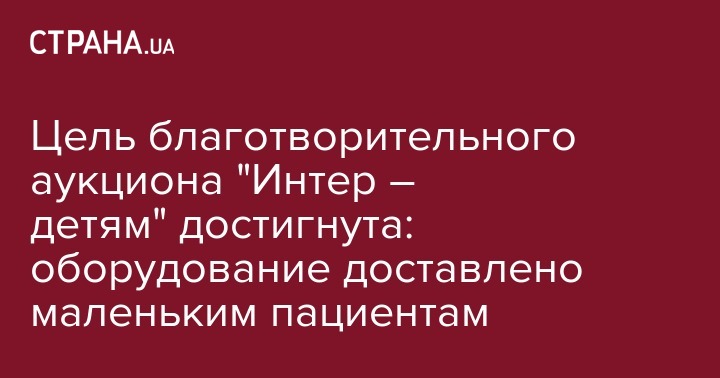 Цель благотворительного аукциона "Интер – детям" достигнута: оборудование доставлено маленьким пациентам