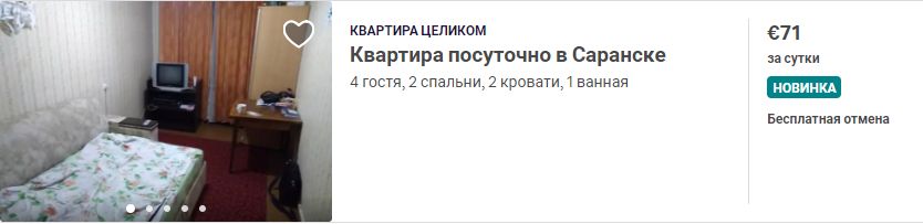 Цены при этом кусаются - например, в Саранске за очень скромную квартиру хотят 71 евро в сутки, при том что даже в Москве можно найти жилье дешевле. А более-менее приличные аппартаменты сдаются по 12-14 тысяч гривень, свидетельствуют данные сервиса Airbnb.