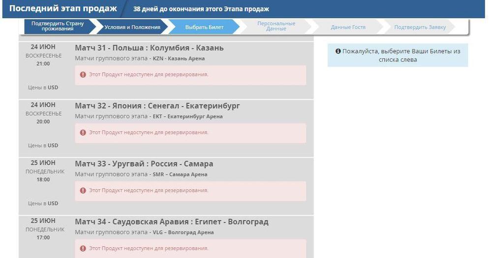 Кроме того, на сайте Федерации билетов хронически нет. Вот данные на полдень пятнцы 8 июня: