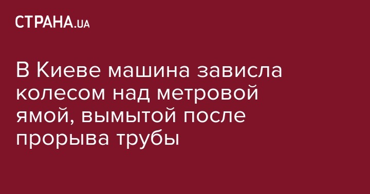 В четверг, 7 июня, в Киеве на улице Бажова прорвало трубу и вымыло грунт. Автомобиль, который стоял рядом, повис над ямой. Инцидент случился около 11:00, сообщает "Информатор".