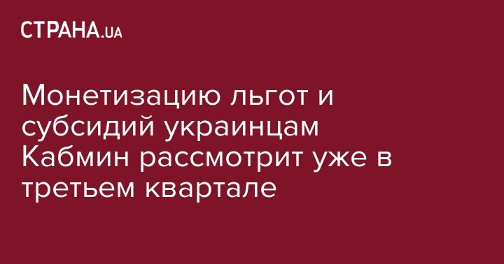 Ответственным органам исполнительной власти поручено в июле-сентябре 2018 года внести на рассмотрение правительства Украины проект адресной монетизации льгот и субсидий.