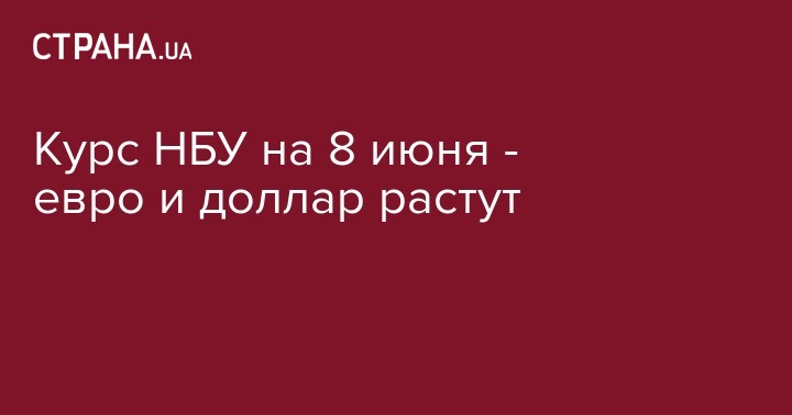 В пятницу, 8 июня, Нацбанк установил официальный курс гривны по отношению к иностранным валютам. По сравнению с предыдущим рабочим днем доллар немного подорожал, евро прибавил в цене чуть больше.