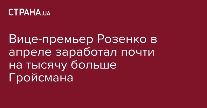 Вице-премьер Розенко в апреле заработал почти на тысячу больше Гройсмана