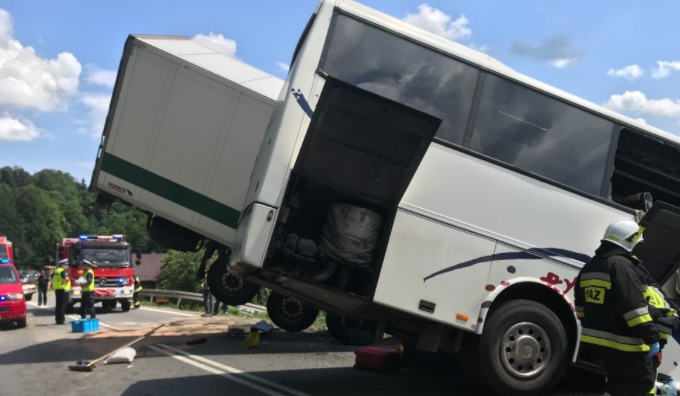 В автобусе ехало 44 детей с 7 класса начальной школы, а также взрослые опекуны. Группа ехала в Варшаву. Двух человек из грузовика и легкового автомобиля зажало, их уже освободили спасатели.