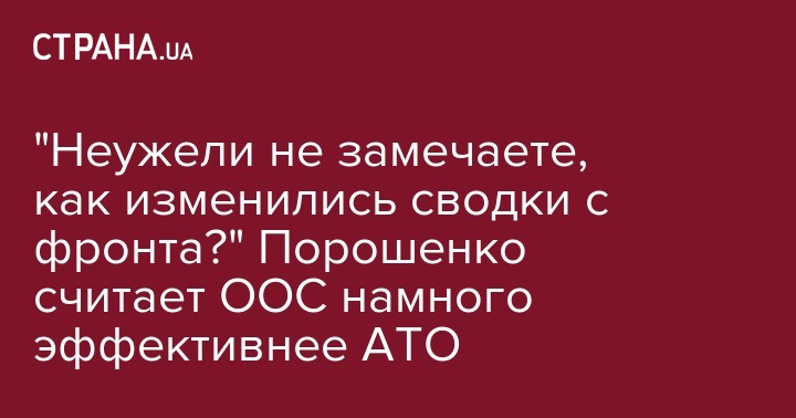 Президент Украины Петр Порошенко считает Операцию объединенных сил (ООС) на востоке Украины значительно эффективнее проводившейся ранее антитеррористической операции (АТО).