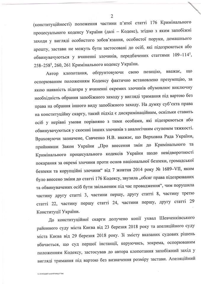 Конституционный суд Украины принял к рассмотрению жалобу Надежды Савченко