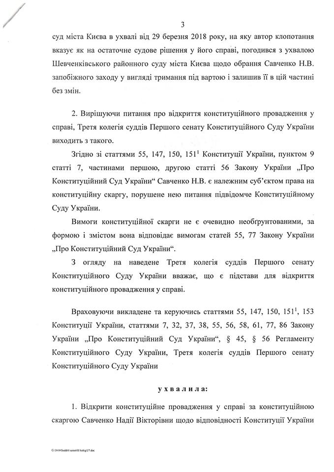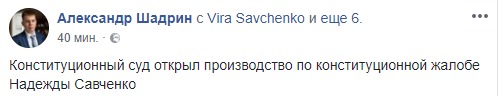 Конституционный суд открыл производство по конституционной жалобе Надежды Савченко.