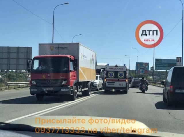 Так на выезде из Киева фура столкнула пассажирский автобус с грузовиком.