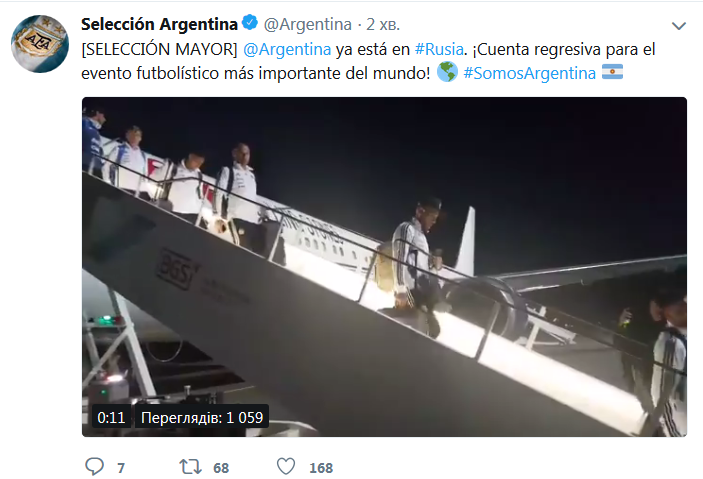 Во время полета Месси и компания много шутили и с удовольствием позировали для официального Twitter сборной. В России сборная Аргентины будет базироваться в подмосковном городе Бронницы. А 11 июня команда проведет открытую тренировку.