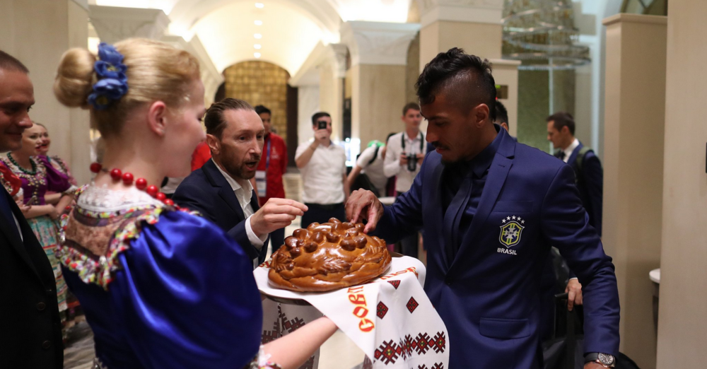 Как передает официальный Twitter пентакампеонов, в сочинском отеле бразильскую делегацию встретили хлебом - солью.
