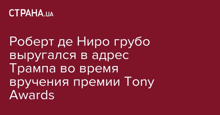 Де Ниро раскритиковав Дональда Трампа в прямом эфире во время вручения наград премии Tony Awards, которая состоялась 11 июня в Нью-Йорке.