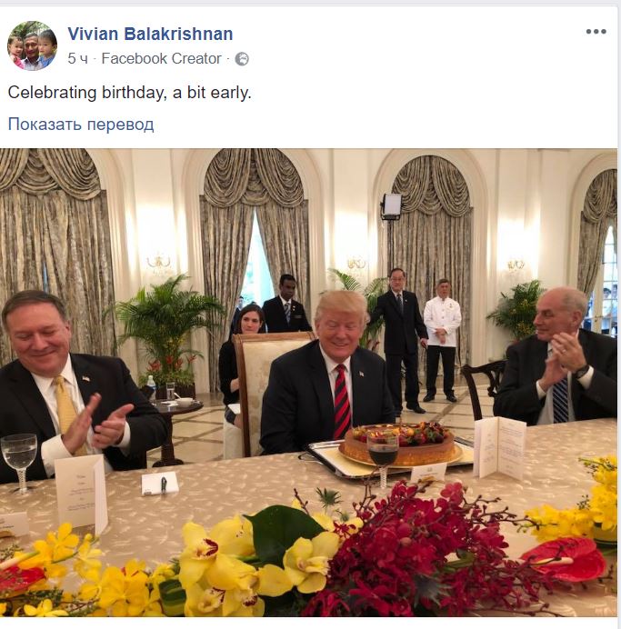 Трампа в Сингапуре поздравили с днем рождения раньше срока. Фото