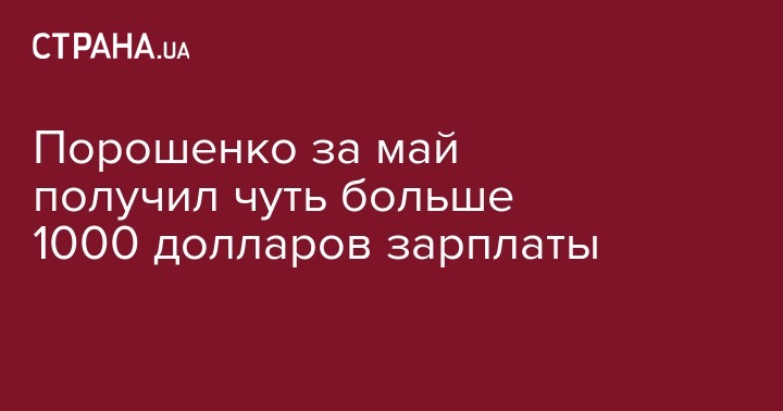Порошенко за май получил чуть больше 1000 долларов зарплаты