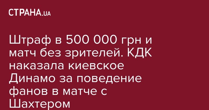 За такое поведение КДК ФФУ оштрафовал столичный клуб на 500 тысяч гривен. Кроме того, "Динамо" проведет один матч при пустых трибунах, сообщает экс-член исполкома ФФУ Артем Франков в своем Twitter.