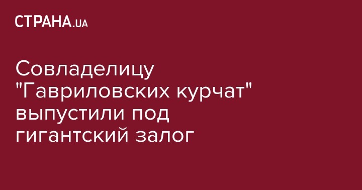 Совладелица предприятия по производству курятины "Агромарс" (ТМ "Гавриловские курчата") Марина Сигал, которую задержали за организацию птичьего могильника, вышла под залог в 90 млн гривен.