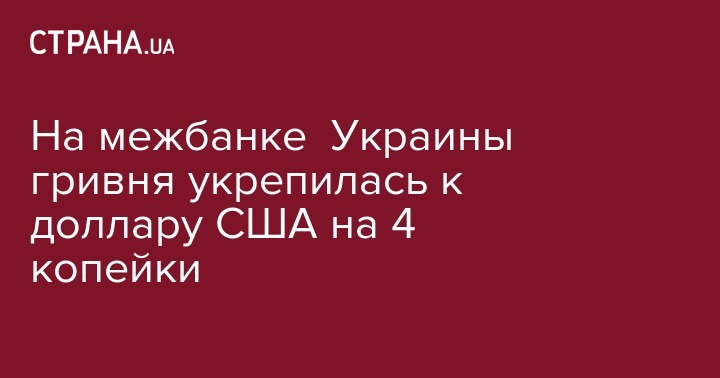 На межбанке Украины гривня укрепилась к доллару США на 4 копейки