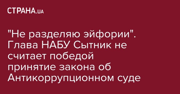 "Поэтому я не разделяю той эйфории, которая звучит из телеэфиров и т.д., что это - победа. Это - первый шаг, и не самый трудный, чтобы эта независимая судебная организация была запущена. Поэтому я надеюсь, что этот закон будет в ближайшее время", - отметил глава НАБУ.