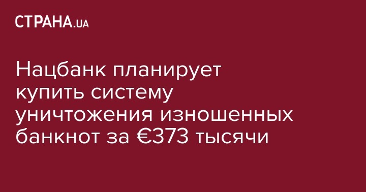 Национальный банк объявил тендер на закупку автоматизированной системы уничтожения ветхих банкнот за 372,950 тысяч евро. Об этом сообщают "Украинские новости".
