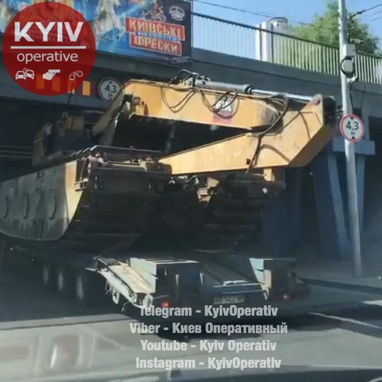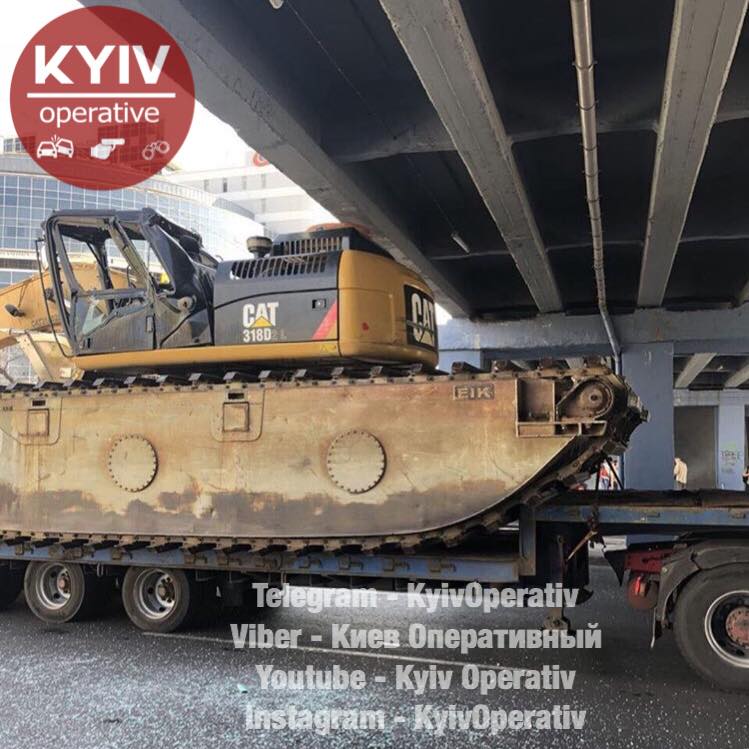 Дорожный инцидент произошел сегодня в Киеве возле станции метро "Левобережная". Водитель грузовика, на который был погружен экскаватор задел путепровод. Об этом говорится на странице "Киев оперативный" в Facebook.