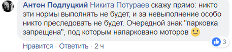 "Никто эти нормы выполнять не будет, и за невыполнение особо никто преследовать не будет. Очередной знак "парковка запрещена", под которым напарковано моторов".