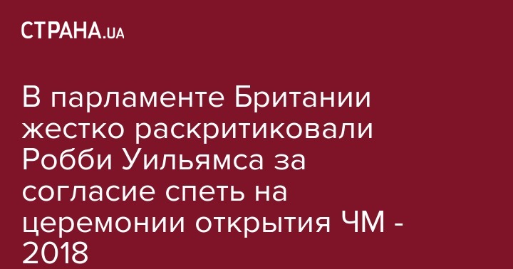 В Британии очень резко отреагировали на то, что знаменитый поп-исполнитель Робби Уильмс согласился выступить на открытии чемпионата мира по футболу - 2018.