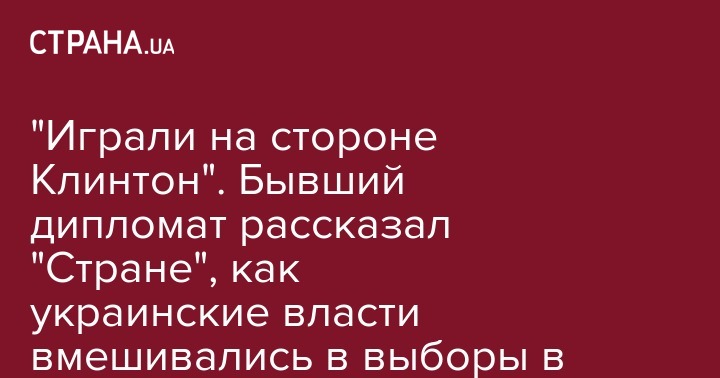 "Играли на стороне Клинтон". Бывший дипломат рассказал "Стране", как украинские власти вмешивались в выборы в США
