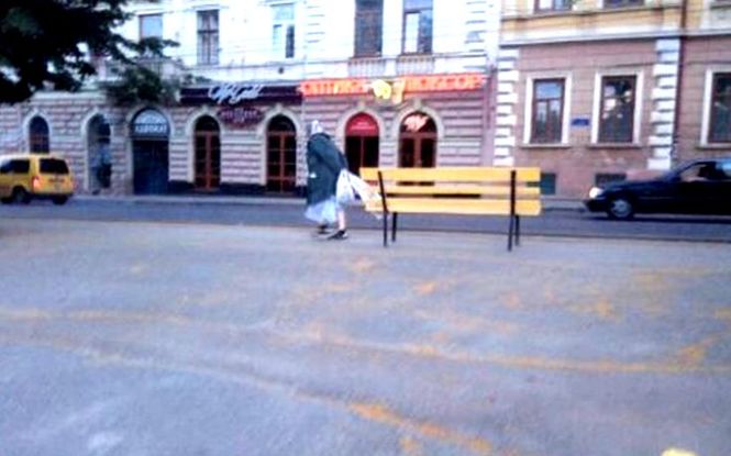 В Черновцах неизвестная пожилая женщина украла с Соборной площади одну из скамеек. Соответствующее видео сняли очевидцы и опубликовали в сообществе chernivtsigram в Instagram.