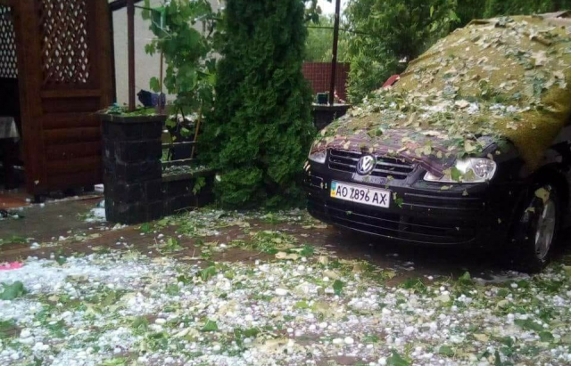 Появились фото и видео, как на Закарпатье выпал град размером с куриное яйцо