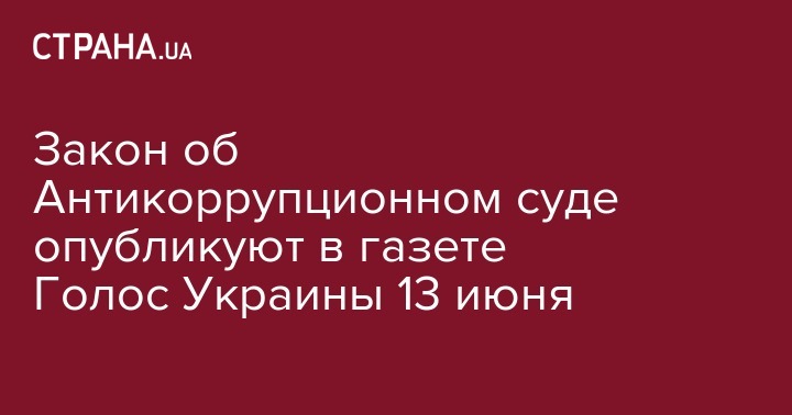 "13 июня в "Голосе Украины": официально обнародован закон Украины "О Высшем антикоррупционном суде", - сообщается в микроблоге Верховной Рады в соцсети Twitter во вторник вечером.
