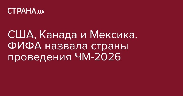 США, Канада и Мексика будут хозяевами чемпионата мира по футболу 2026 года. Соответствующее решение было принято на конгрессе ФИФА в столице России Москве. Об этом сообщает пресс-служба ФИФА в Twitter.