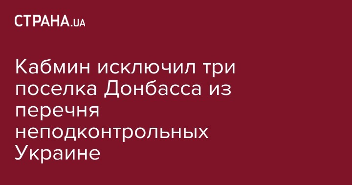 Кабинет министров Украины исключил населенные пункты Гладосово и Травневое (Донецкой области) и Новоалександровку (Луганской области) из перечня населенных пунктов, на территории которых органы государственной власти временно не осуществляют свои полномочия.