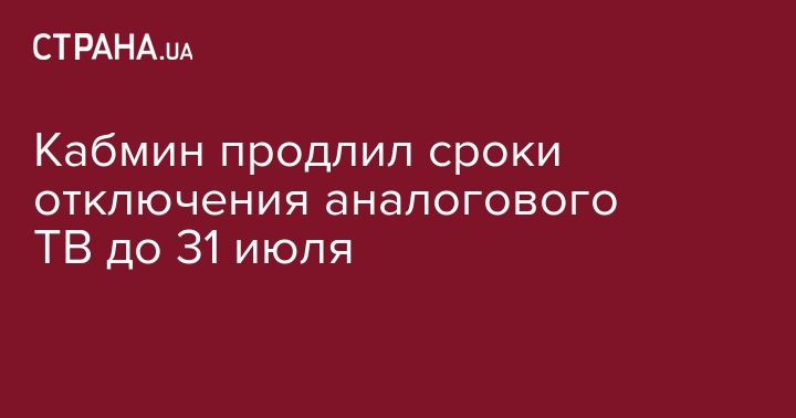 Кабинет министров еще на два месяца продлил сроки отключения аналогового вещания. Ранее предполагалось, что вещание отключат 1 июля, передает РБК-Украина.