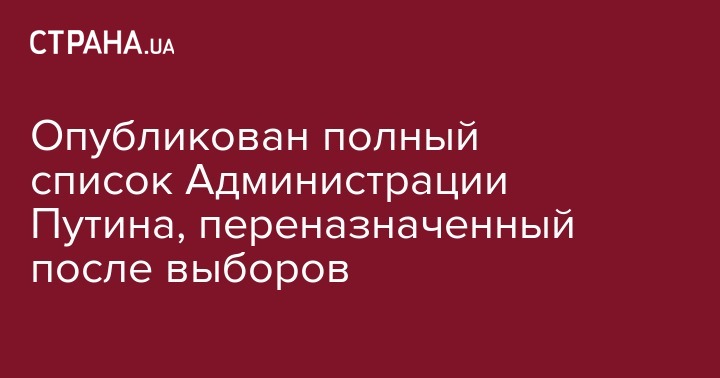 Опубликован полный список Администрации Путина, переназначенный после выборов