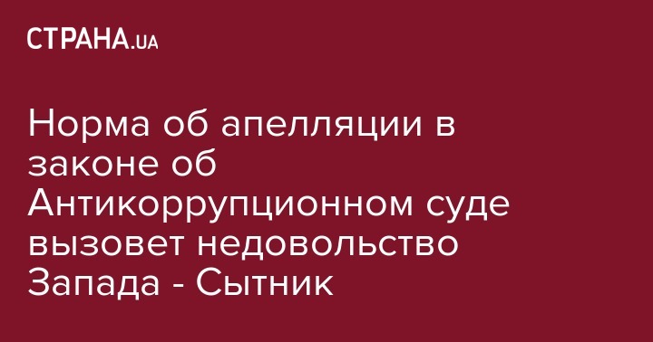 Норма об апелляции в законе об Антикоррупционном суде вызовет недовольство Запада - Сытник