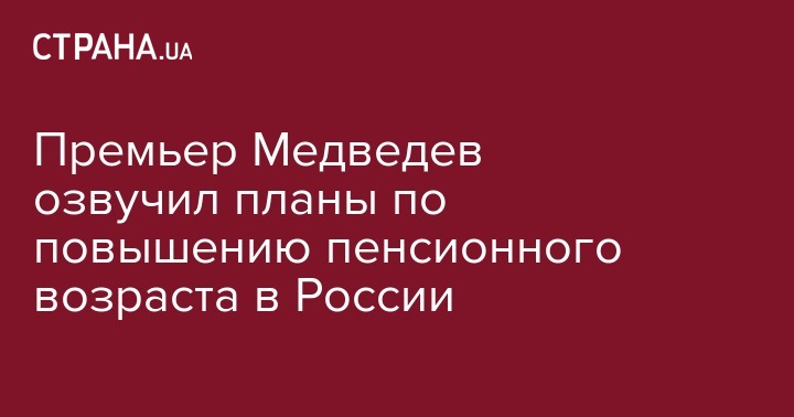 Премьер-министр России Дмитрий Медведев заявил о предложении правительства повысить пенсионный возраст до 63 лет для женщин и до 65 лет для мужчин.