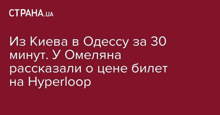 Из Киева в Одессу за 30 минут. У Омеляна рассказали о цене билет на Hyperloop