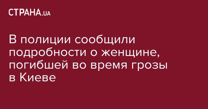 В полиции рассказали некоторые детали трагедии, которая разыгралась в Киеве, вчера, 14 июня, во время страшной грозы и проливного ливня. Погибшей на улице Голосеевской, 14, оказалась 34-летняя сумчанка.