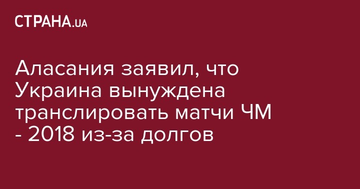 Аласания заявил, что Украина вынуждена транслировать матчи ЧМ - 2018 из-за долгов