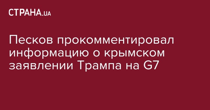 Пресс-секретарь президента России Дмитрий Песков Кремль отреагировал на информацию о том, что Дональд Трамп якобы заявил на ужине саммита G7, что Крым российский.