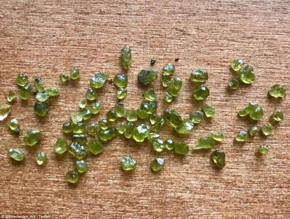 Похожие на изумруды минеральные камни зеленого цвета - оливины усеяли пляжи и улицы Гавайев. Их выбросило на поверхность в результате извержения вулкана Килауэа на Большом острове Гавайев, которое длится уже больше месяца.