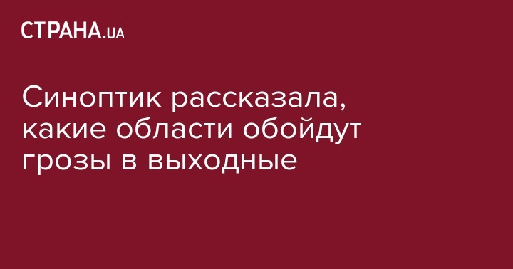 "Центральные области, Сумщина, Черниговщина, Харьковщина, юг (но не юго-восток) - кратковременные дожди, грозы, местами сильные ливни, град и шквалистое усиление ветра. Запад может передохнуть - без существенных осадков, лишь кое-где локальных немного дождей. Луганщина, Донетчина , большинство Запорожье - сухо, солнечно, жарко. Житомирщина - без существенных осадков. Киевщина - местами локальные дожди, гроза, 50/50 ", - отметила она.