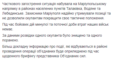 Штаб ООС констатирует снижение интенсивности боев на луганском направлении