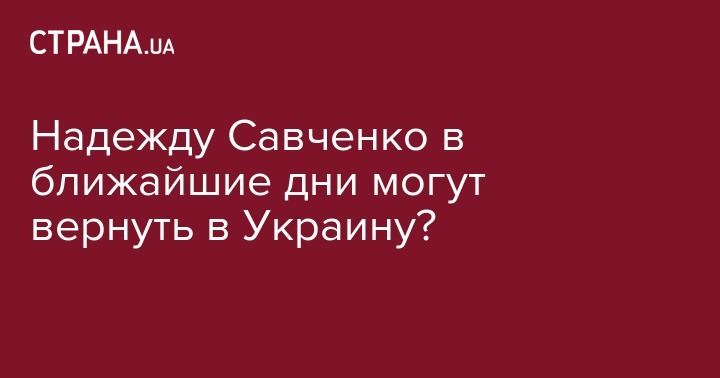 Надежду Савченко в ближайшие дни могут вернуть в Украину?