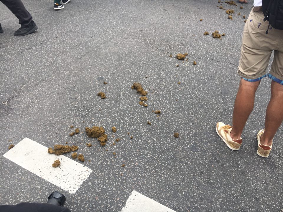 10:26  По пути движения марша - следы присутствия конной полиции.