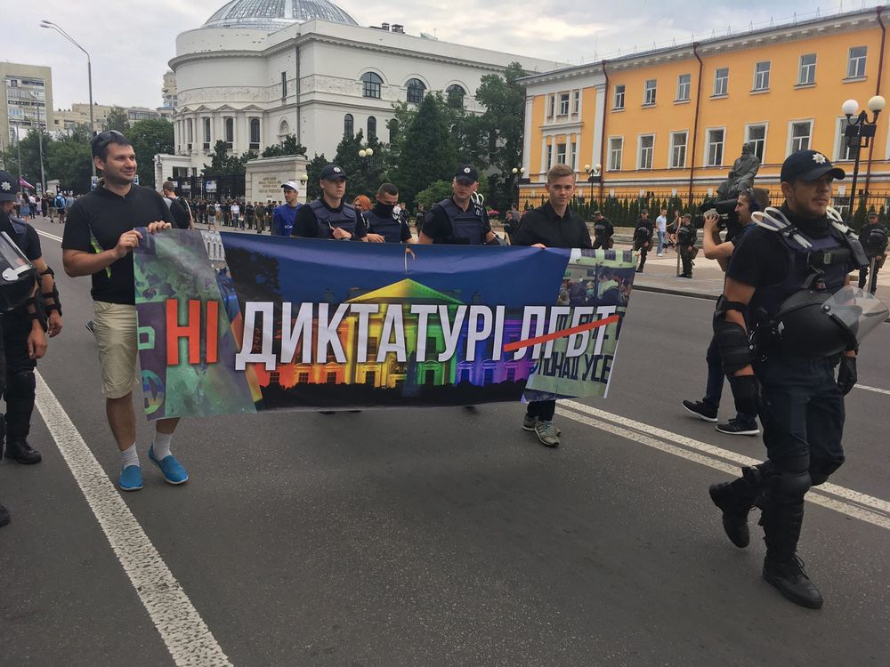 5. Оппонентов марша в этом году тоже было больше - и вели они себя активнее, чем раньше. Хотя до избиений представителей ЛГБТ дело пока не дошло - их организованно вывозили автобусами и выделили для них "свой" вход в метро. А сам прайд прошел за металлическим ограждением. Это говорит о том, что, несмотря на подобные парады, Киев для них так и не стал "своим" городом.