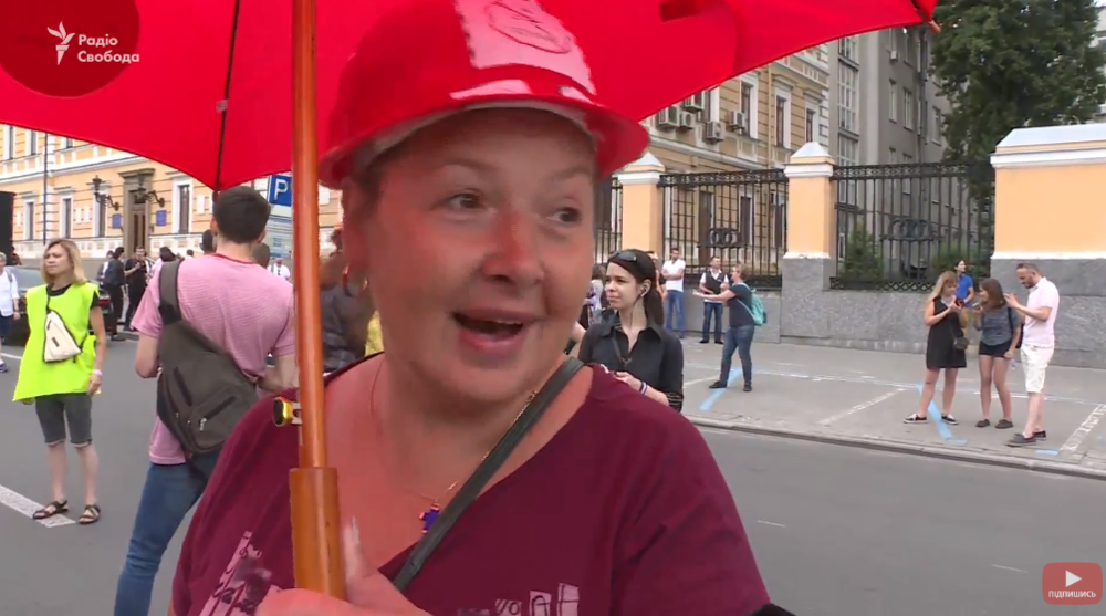 09:16  "Самоорганизация секс-работников Украины" - тоже в колонне за права ЛБГТ. На кадре - Юлия Дорохова, глава этой организации.