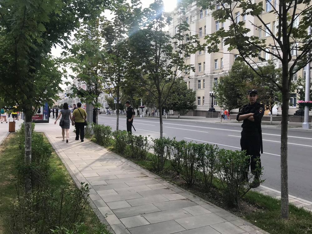 18.34 Вдоль главных улиц Ростова-на-Дону выстроились полицейские, сообщает корреспондент "Страны" с места событий.