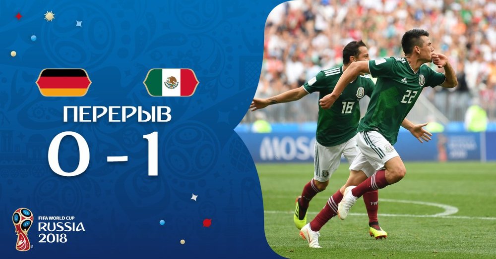 После первого тайма ведут мексиканцы - 1:0. Небольшая сенсация. Очевидно, что подопечные Осорио сделали выводы из разгромного поражения от немцев на прошлогоднем Кубке Конфедераций.
